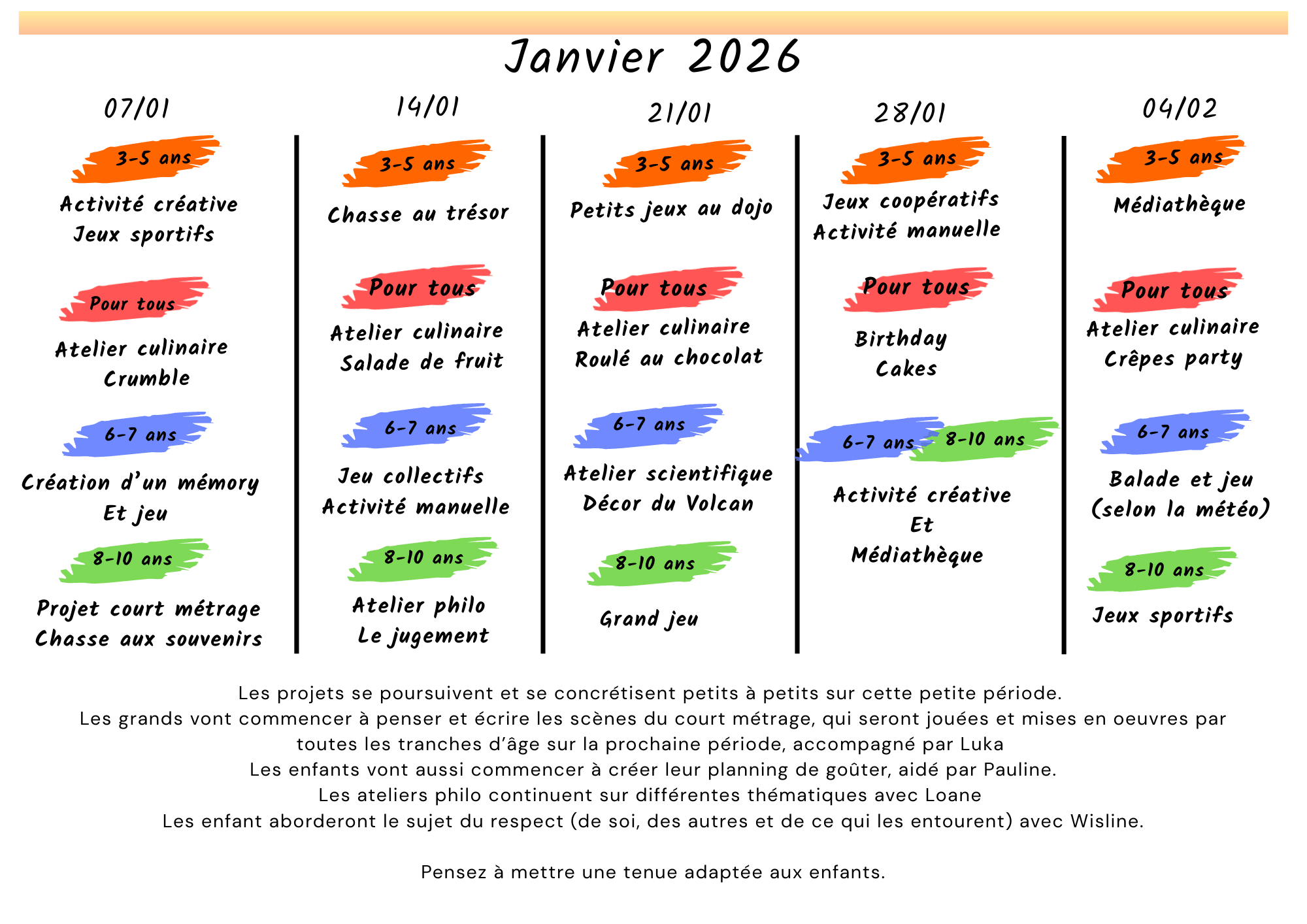 Programme mercredi